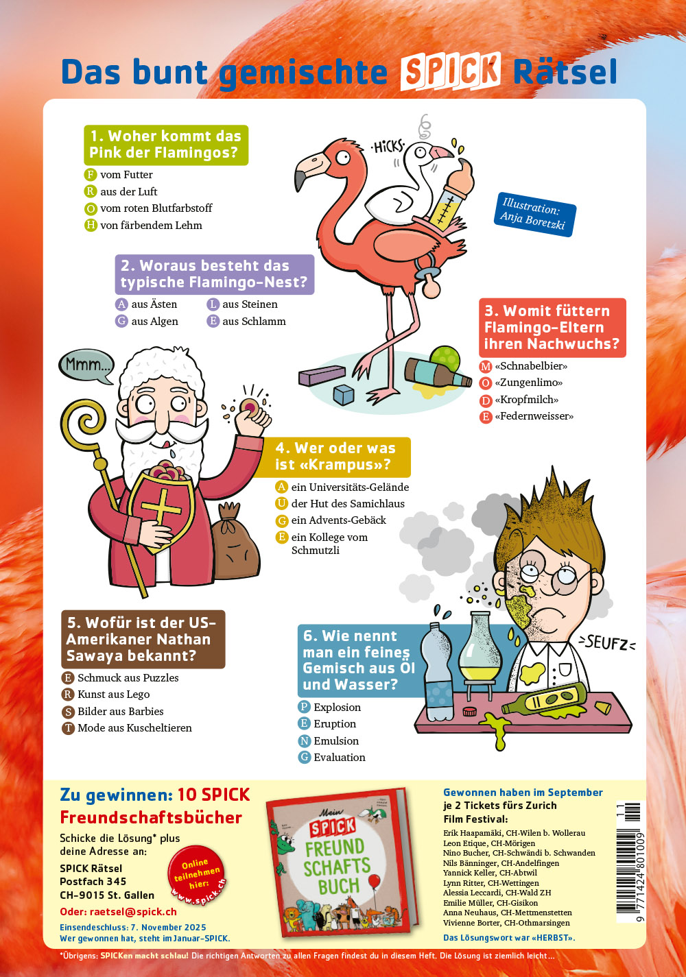 Einsendeschluss: 7. November 2025. Wer gewonnen hat, steht im Januar-SPICK.